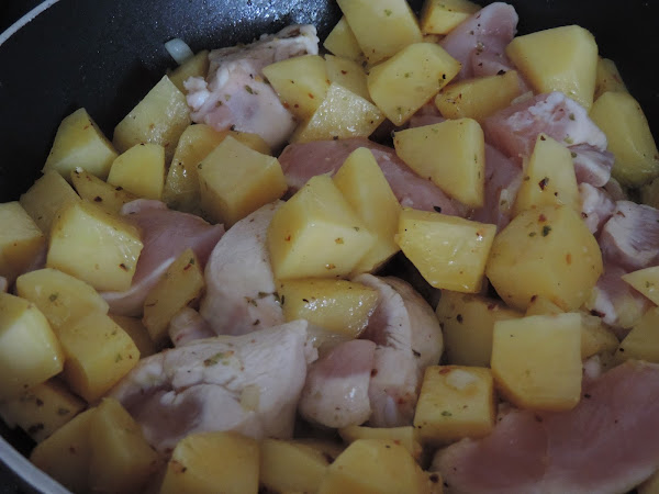 Aquí en esta foto las pechugas sofriéndose con las patatas.