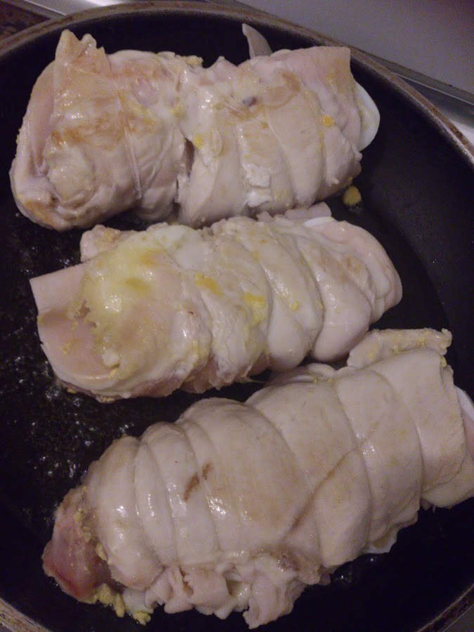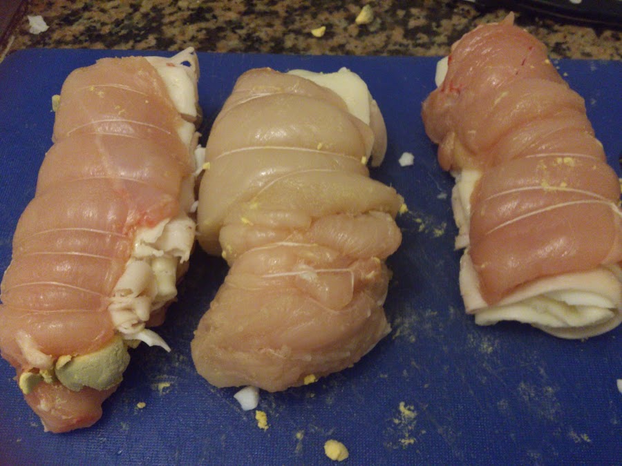 enrollamos nuestras pechugas y las atamos con una cuerda de cocinar.