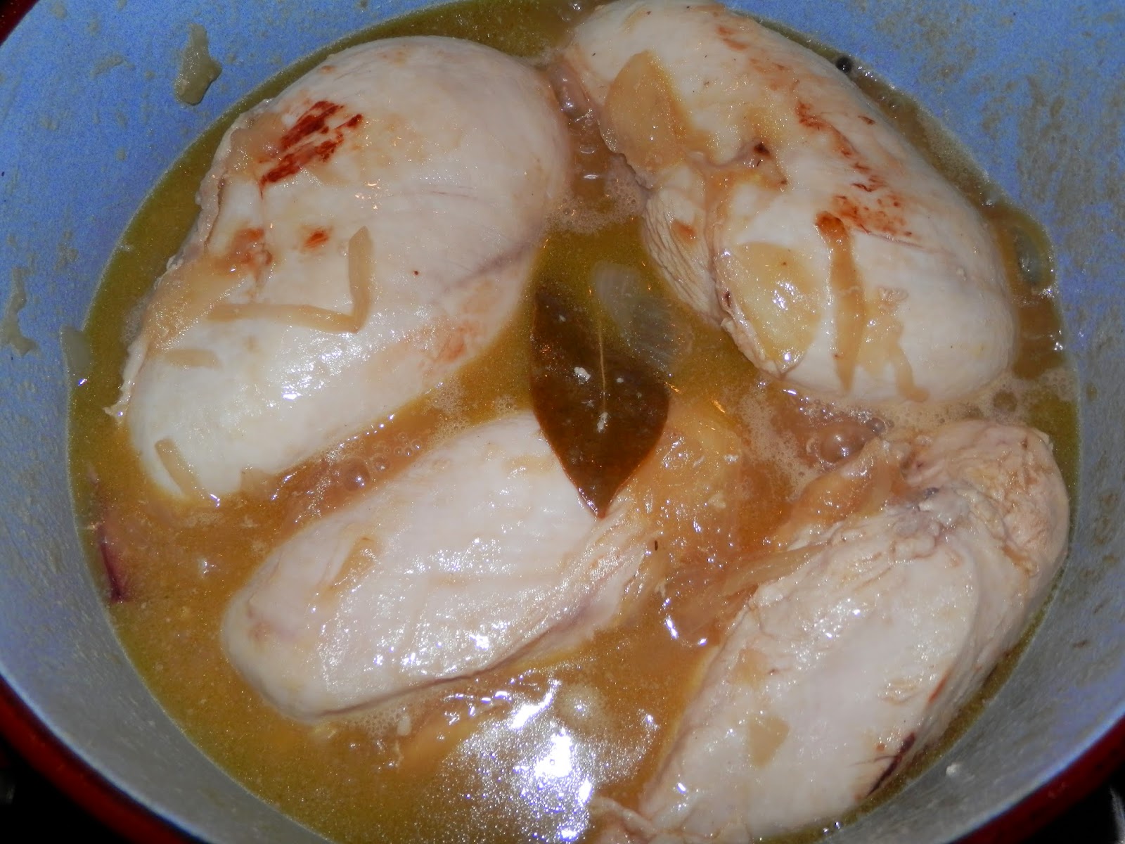 Mi consejo es que busquéis la cazuela en la que las pechugas vayan a quedar justitas, porque como apenas lleva caldo, si es muy grande se evapora y os quedáis con las pechugas a medio hacer.