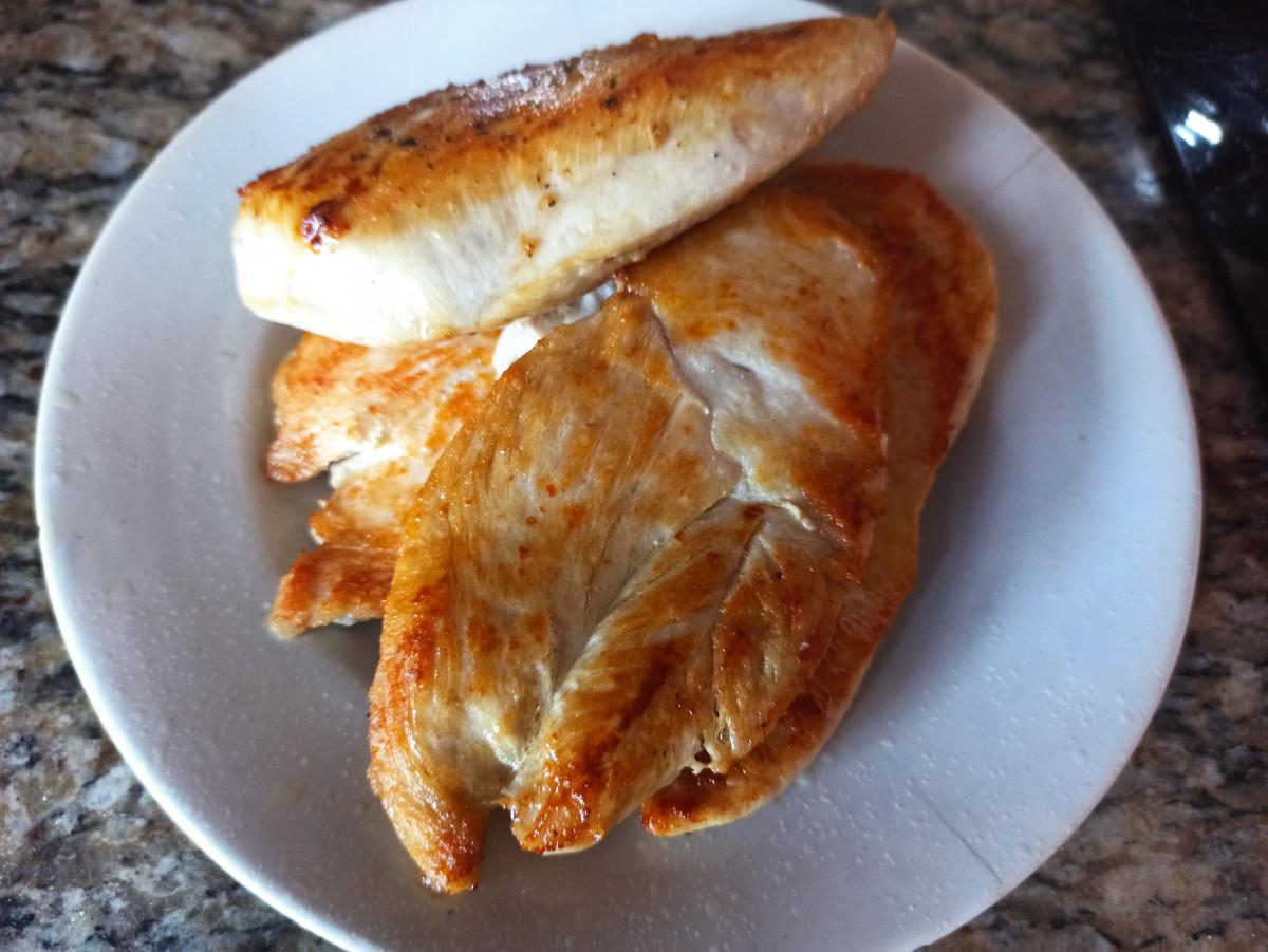 Abrir por la mitad las pechugas, se os quedarán cuatro filetes gorditos.