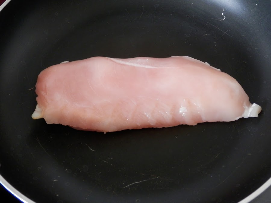 Calentamos una sartén sin aceite, sólo para sellar las pechugas, sellamos por todos los lados.
