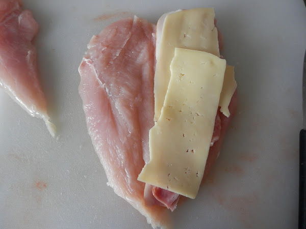 Una vez, abiertas las pechugas, pondremos a lo largo de ellas, dos lonchas de bacon por pechuga, procurando que quede bien cubierta y encima del bacon pondremos el queso.