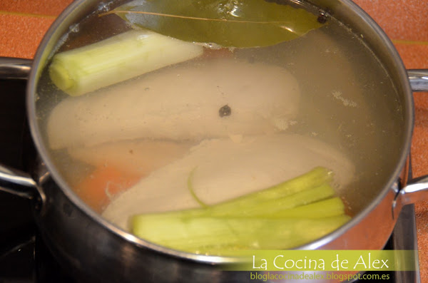 A continuación, introducimos las pechugas enteras en el caldo y las cocemos durante 10 minutos para que se hagan en el interior.