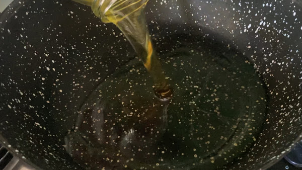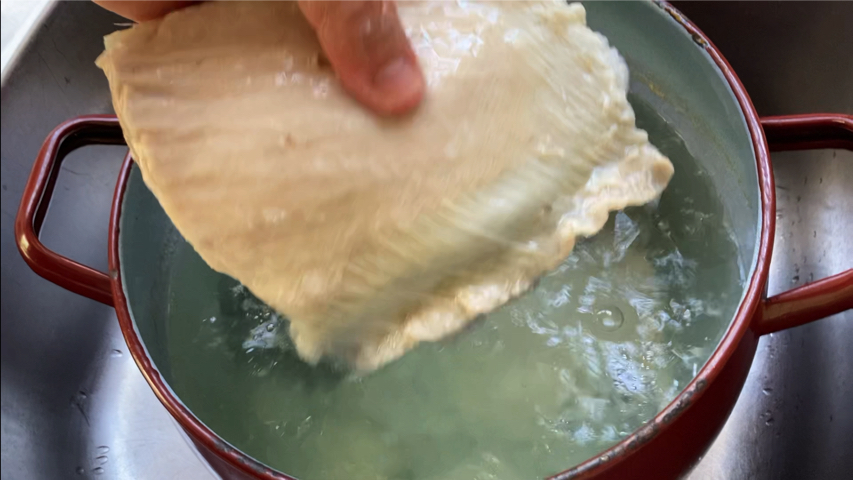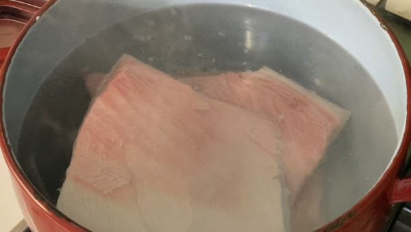 Apaga el fuego y deja que enfríe la olla con los trozos de piel de atún en su interior.