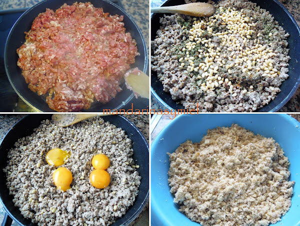Ahora es el momento de añadir la miga de pan rallado, echa la masa de carne encima del pan rallado, ves mezclando poco a poco hasta que esté todo bien unido, te aconsejo que lo hagas con las manos, se mezcla mucho mejor.