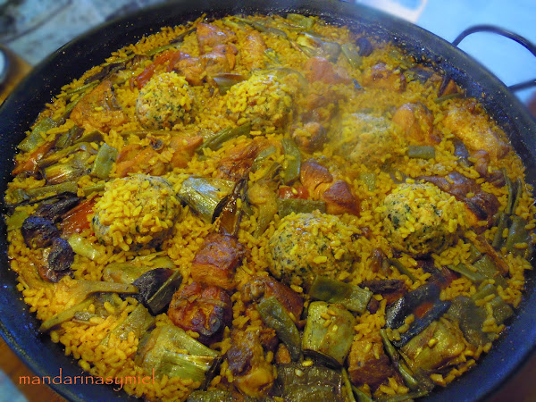 Como ya os conté cuando la publiqué, un plato que no puede faltar en la cena de Nochebuena en mi casa es la sopa de menudillos o menuncias, y el día de Navidad siempre como plato principal, la paella y por supuesto...los dos con pelotas de Navidad!!!