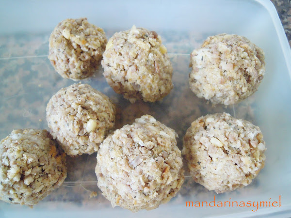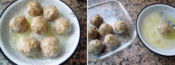 Pasa las pelotas por las claras y deja en una fuente o táper para que les dé el aire y se sequen un poco, no mucho.