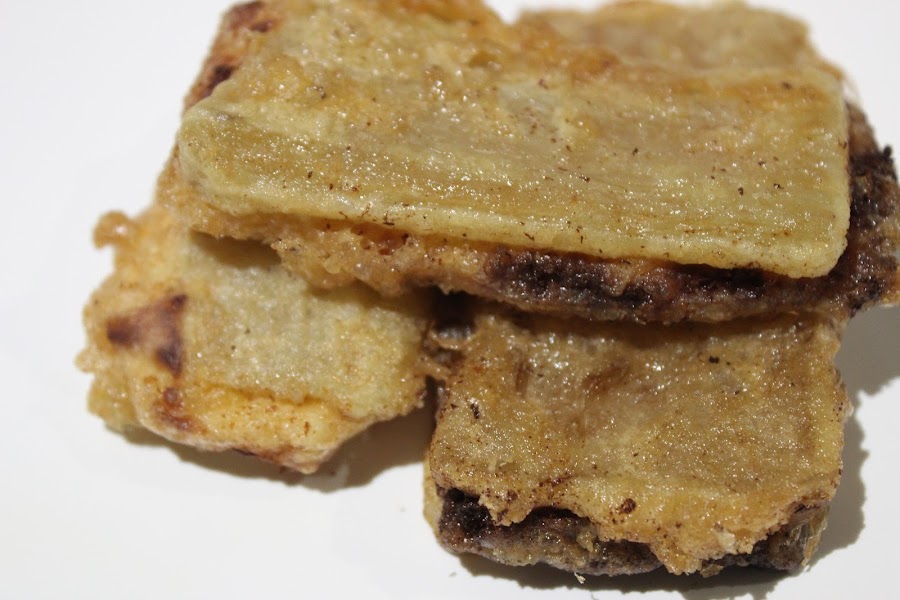 Lo rebocé en harina y huevo y lo freí en aceite no muy caliente.