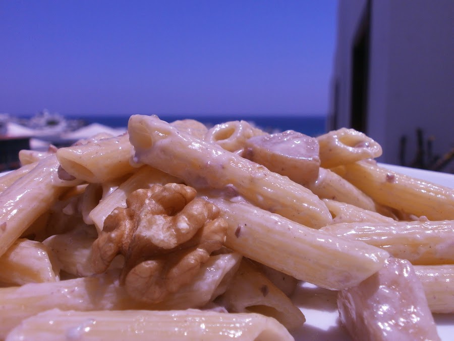Penne al gorgonzola,peras y nueces
