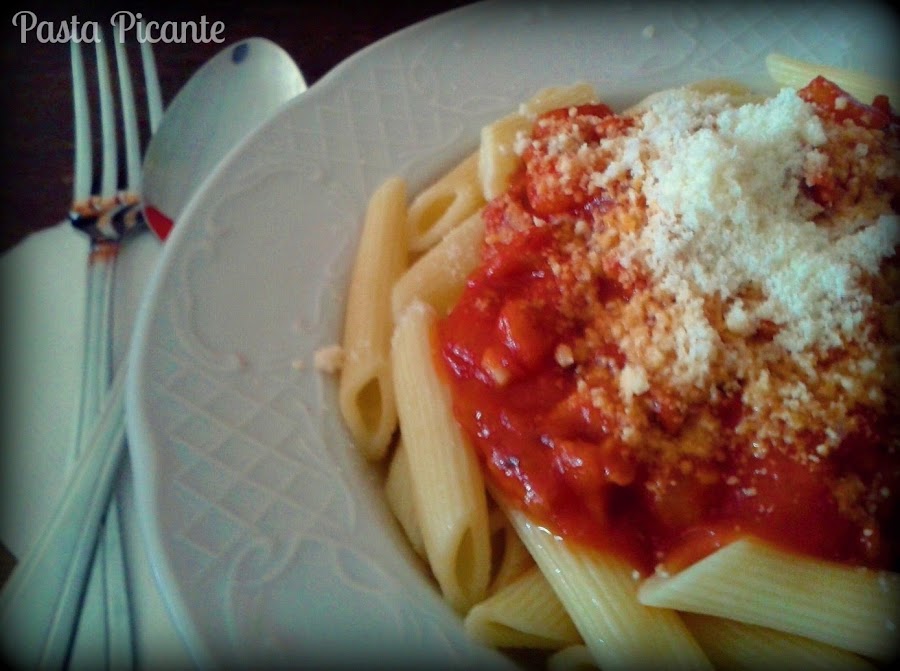 Hay días en los que se puede ser muy feliz con un simple plato de pasta. Y hoy fue uno de esos días, en los que con un poco de pasta, una ensalada y unos palitos resultó un menú estupendo y completo. Los lunes además suelen ser un día ideal para estos platos porque apenas requieren preparación. Le dimos un toque picante a la salsa y resultó todo un acierto. Vamos con la receta!!