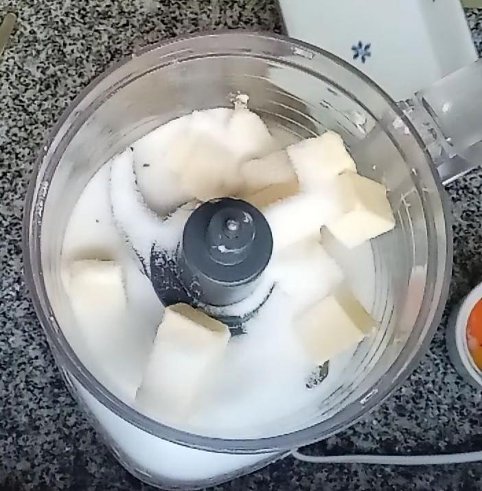 Mezcla la manteca con el azúcar y batir hasta cremar, agregar la esencia y la ralladura de limón