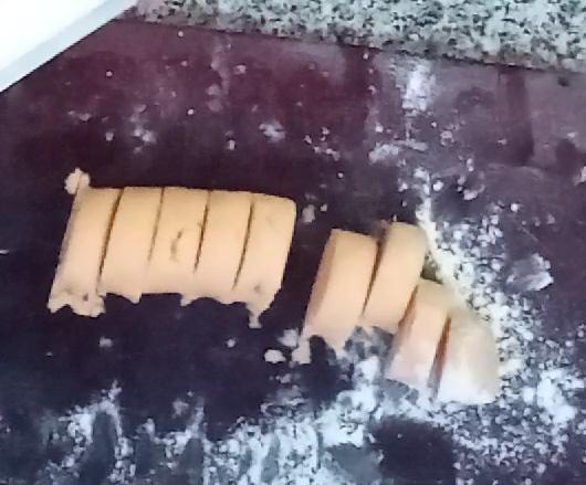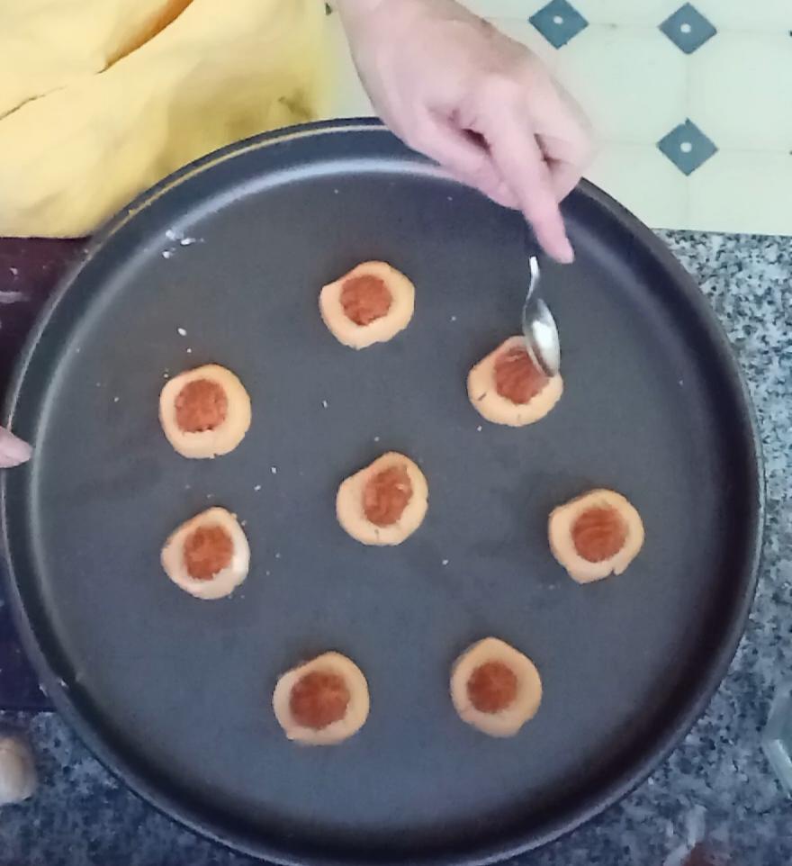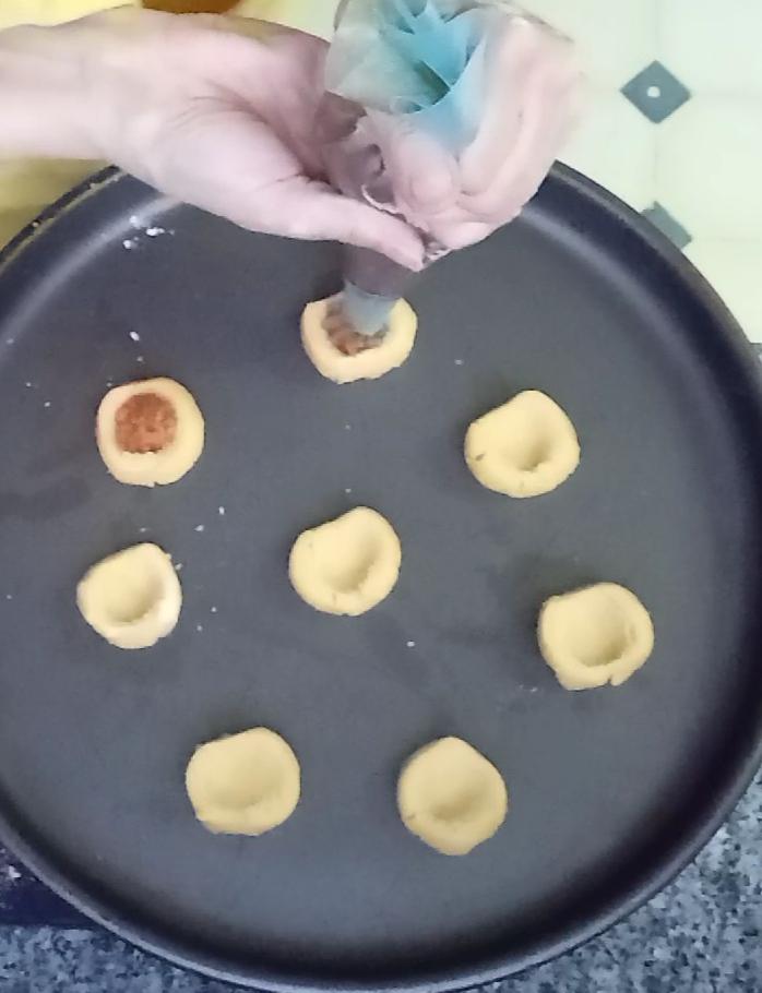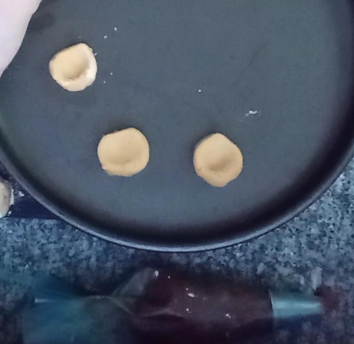 Hacer cilindros y cortar rodajas de 1 cm y hundir el dedo formando un hueco