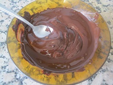 Troceamos el chocolate y lo fundimos en el microondas o al baño maría.