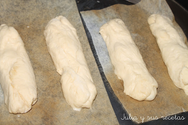 La sacamos la amasamos un poquito para retirarle el aire y hacemos los bollitos al tamaño deseado, no demasiado grandes porque luego doblaran su volumen, a mi me salieron demasiado grandes. Los colocamos sobre papel de horno y los dejamos reposar tapados con un paño de cocina hasta que doblen su volumen en una habitación templada.