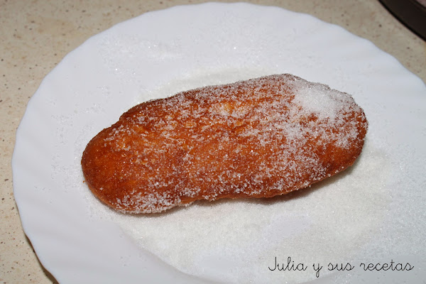 Los ponemos sobre papel absorbente y los rebozamos en azúcar.