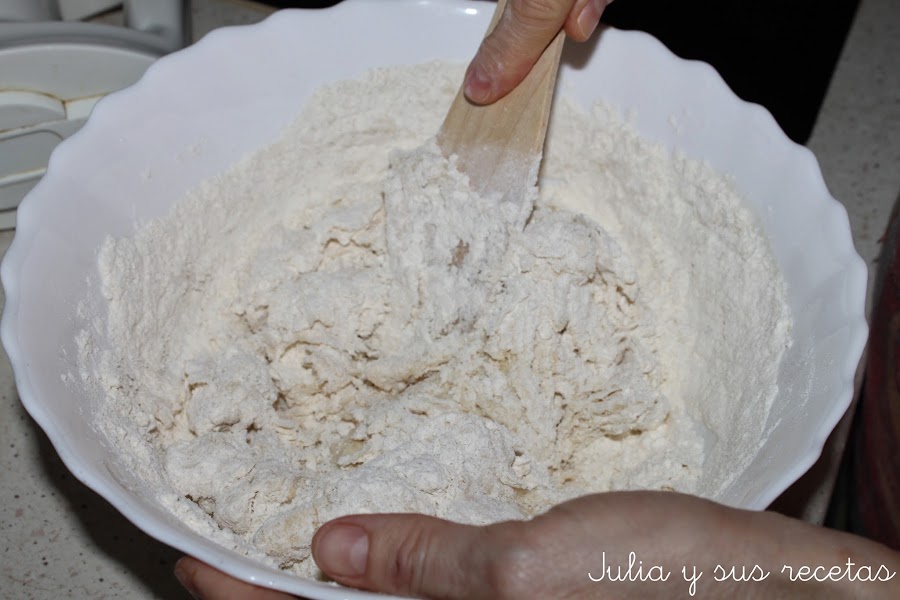 Yo metí las varillas amasadoras porque es una masa muy pegajosa pero se puede amasar con las manos hasta que se forme una masa que se desprenda de las paredes.