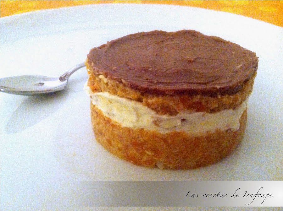 Las recetas de Isafrape nos presenta esta pequeña maravilla. Una deliciosa versión de la carrot cake con chocolate y sin pasar por el horno. Una tartita para degustar con amigos. Puedes ver la receta entera en su página.