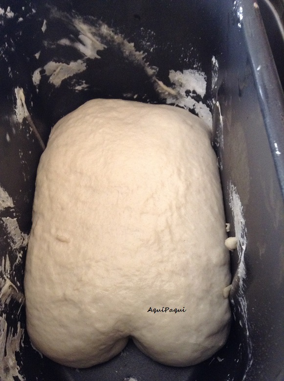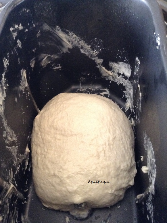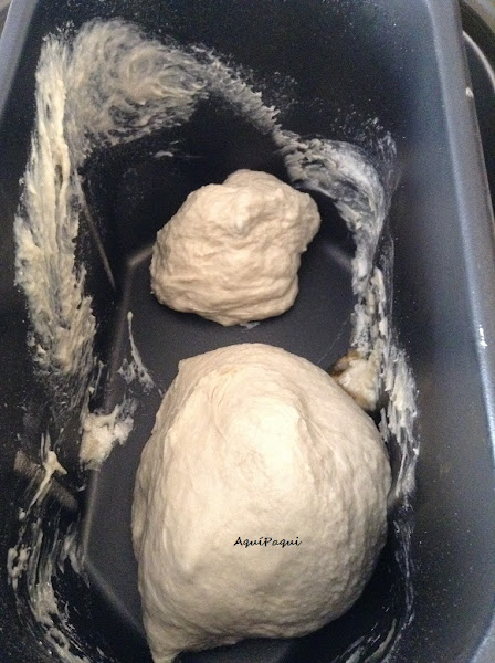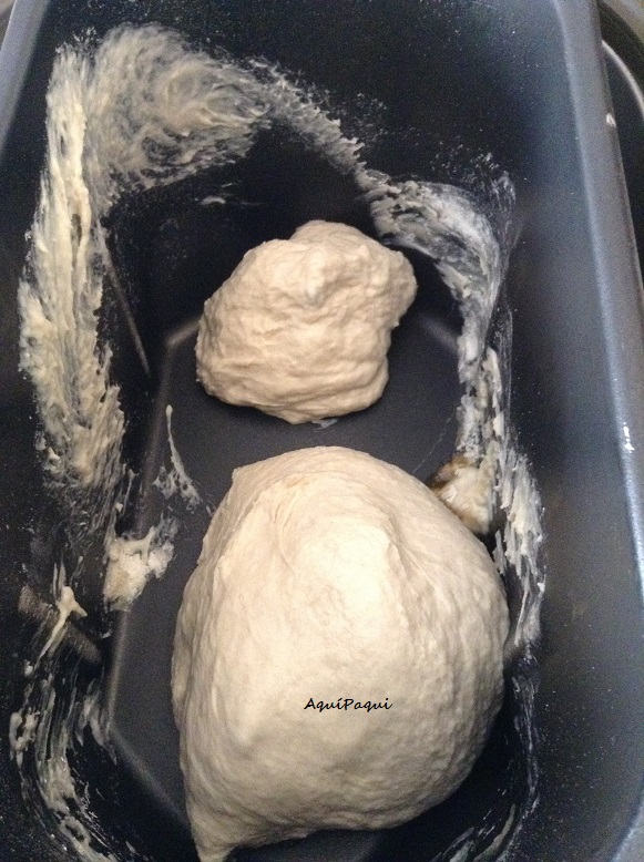 por eso cuando acabe el amasado y en la pantalla pone que quedan 1:00 , paro la máquina, quito las aspas y acomodo la masa como un bollito o dos centrándola.