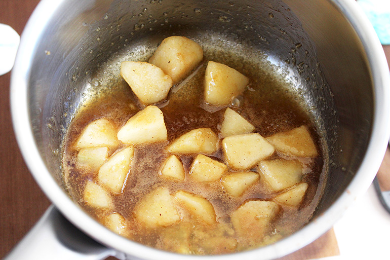 Remover de vez en cuando pero no mucho para que la pera se impregne bien de todos los ingredientes.