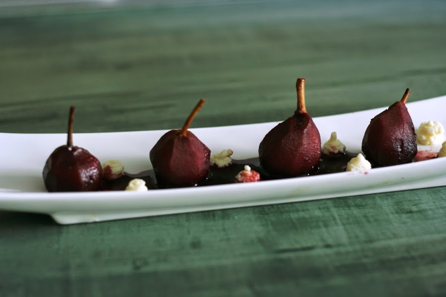 Ingredientes para 4 comensalesPera general leclerk 4 unidades azúcar 250 gr. agua 750 ml. vino blanco de oporto 250 ml. chocolate fondant 250 gr. canela en rama clavo de olor anís estrellado [imagen=1826282] Se pelan las peras y se ponen en una cazuela con el almíbar que hemos hecho previamente mezclando el agua y el azúcar. Cuando empieza a hervir, se dejan cociendo a fuego medio durante un ...