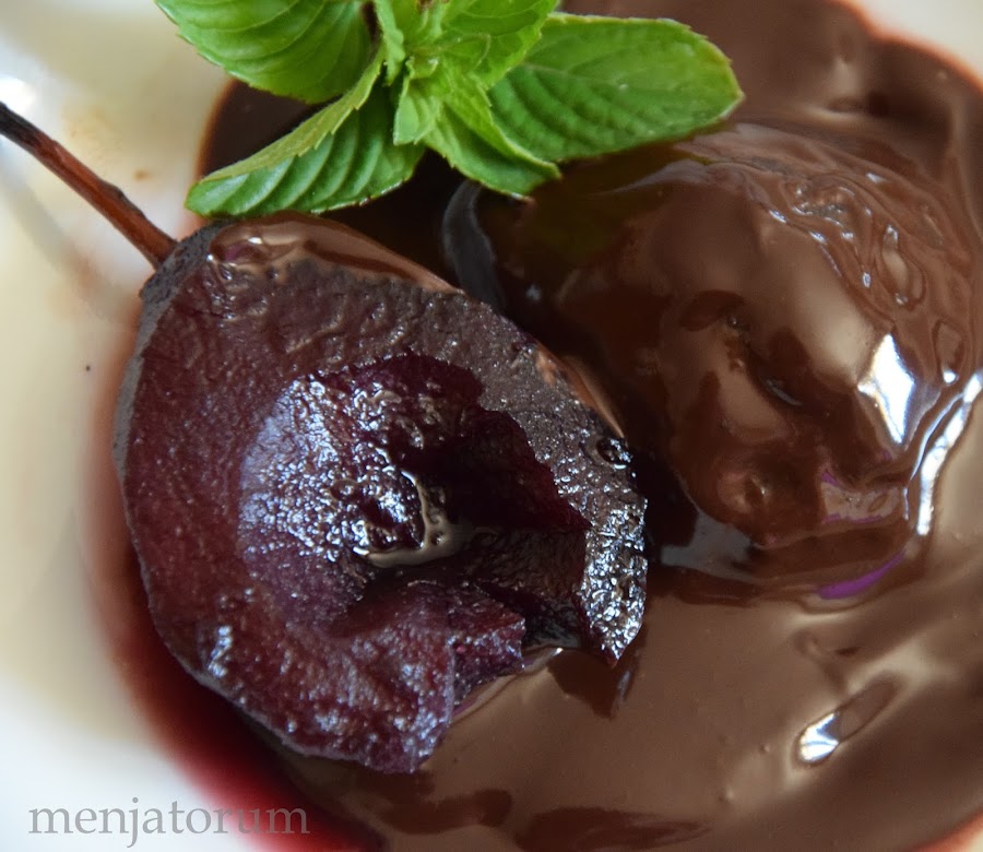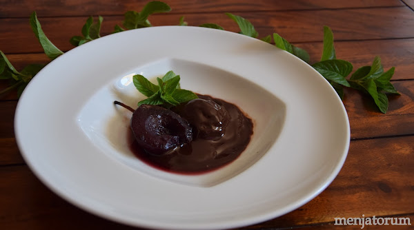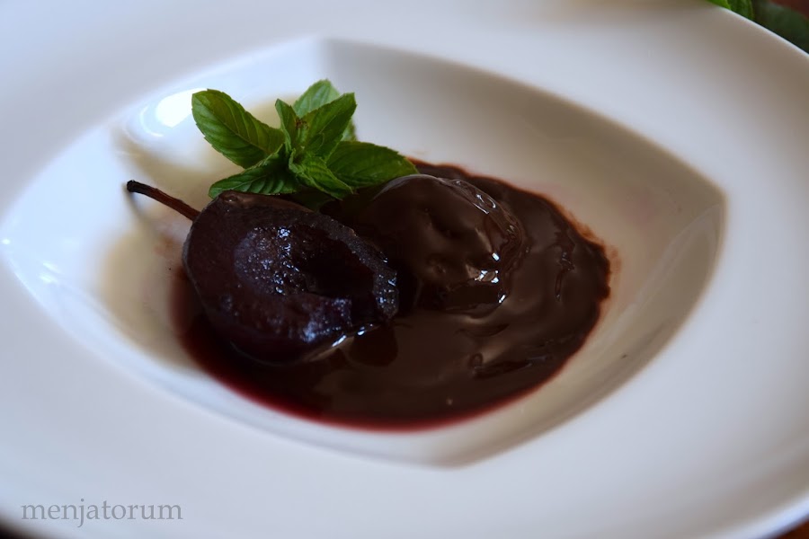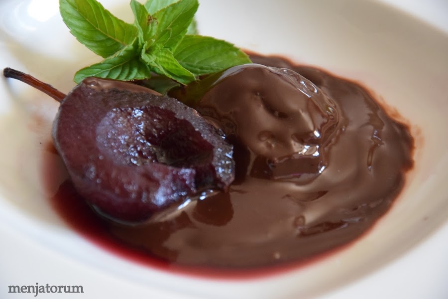 A parte fundir el chocolate negro con una cucharada de mantequilla y un par de cucharaditas de la reducción del vino.