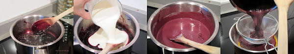 Cuando el vino haya reducido, incorporar la nata (crema de leche) y llevar a ebullicion. Remover con las varillas y dejar hervir fuerte hasta disolver completamente la nata (crema de leche). Verter la crema de vino a través de un colador sobre las yemas batidas, escaldar.