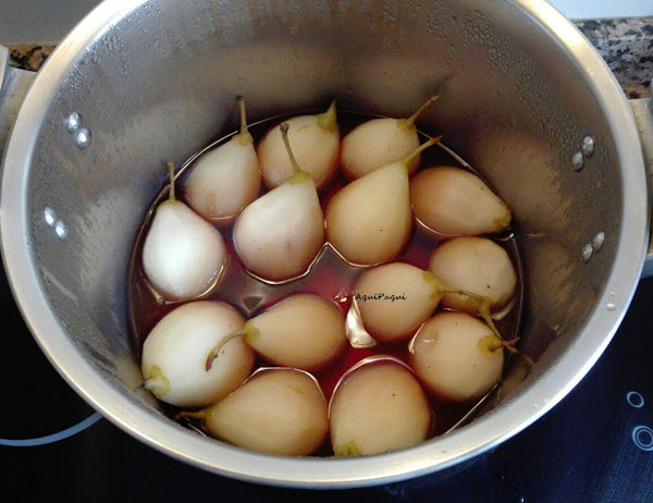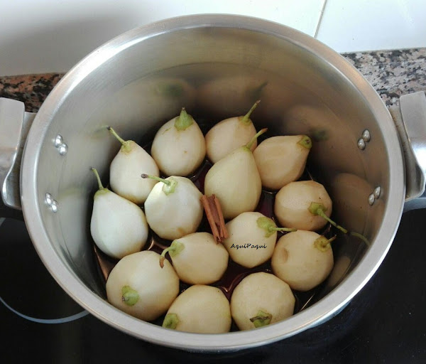 Si te gusta con el almíbar mas denso puedes sacar las peras de la olla y reducir a fuego lento el caldo hasta que espese un poco, será mas fácil si has puesto 150 gramos de azúcar en vez de los 100 gramos que pongo yo.