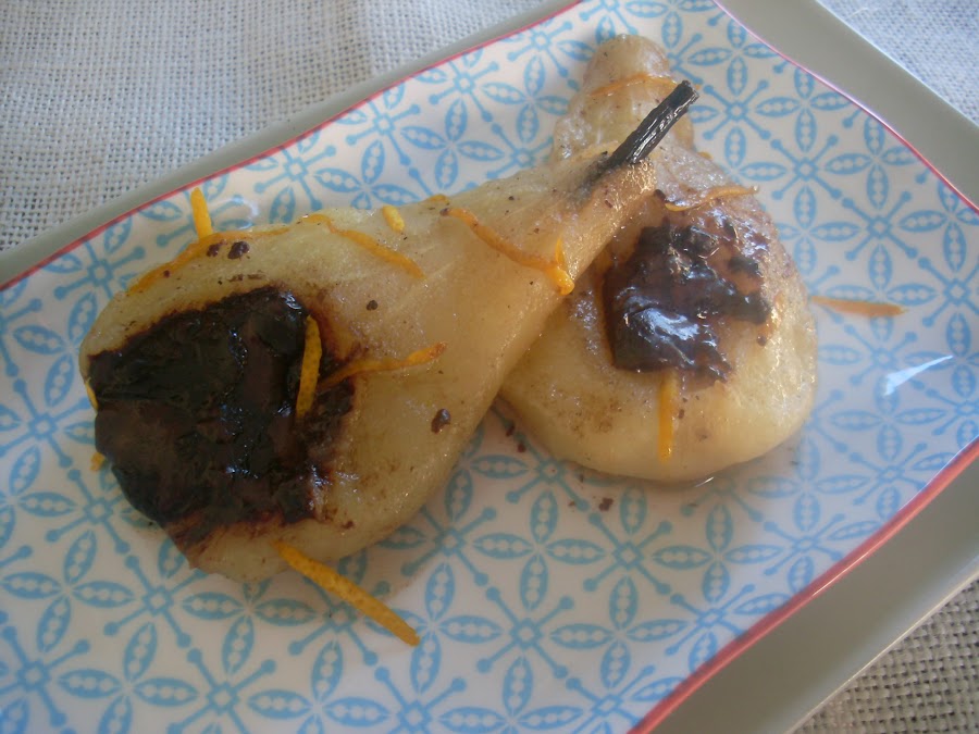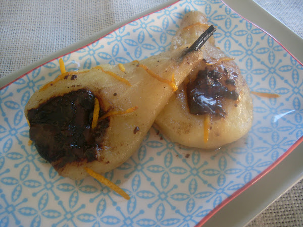 Poner una onza de chocolate en el hueco de cada mitad de pera