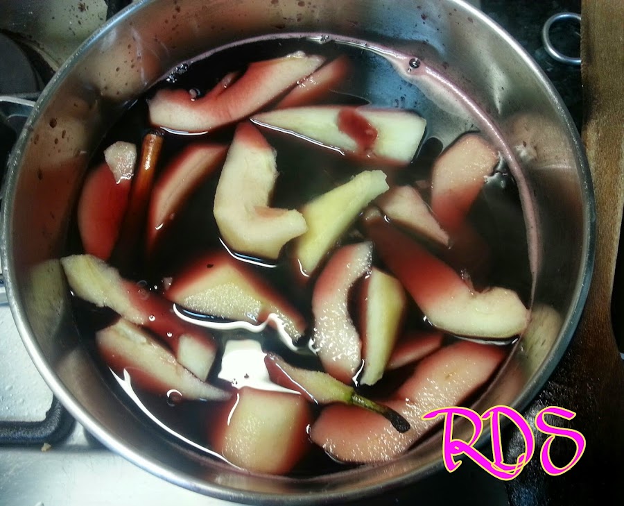 En primer lugar pondremos en una olla el vino, la canela, el azúcar y la pimienta, lo pondremos a cocer a fuego lento durante 3 minutos y remover con una cuchara de madera hasta que se disuelva el azúcar.