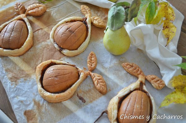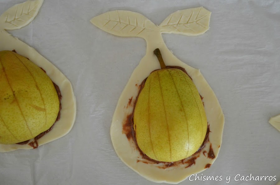 Puedes usar la pera que más te guste, yo use unas de nuestro árbol. Y crema de cacao a tu gusto. Puedes pintar de huevo batido el hojaldre para que quede más dorado yo no lo hice para dar un toque más rústico.