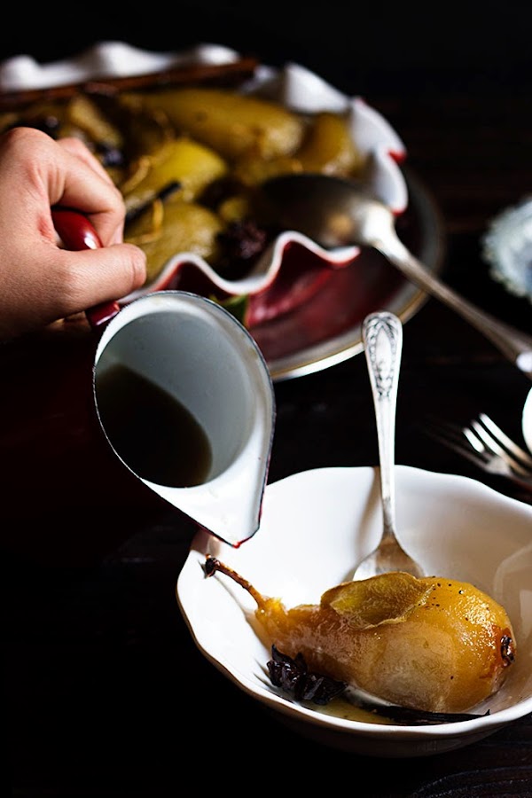 Si os gustan los sabores intensos, llenos de matices no dudéis en preparar éstas peras que inundarán toda vuestra casa a olor a jengibre, canela, clavo, cardamomo, etc, por sí solas son una auténtica delicia y acompañando tanto una carne como el pato como una torrija y helado lo convierten en un plato redondo, de hecho creo que si no cambio de idea a última hora, éste va a ser el postre el día de Navidad.