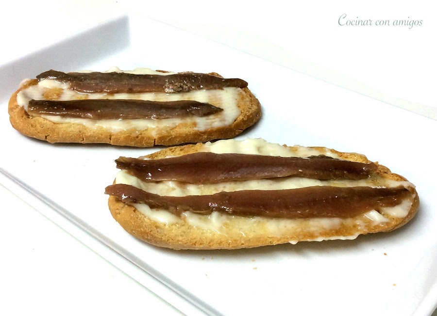 Colocamos dos anchoas por tostada.