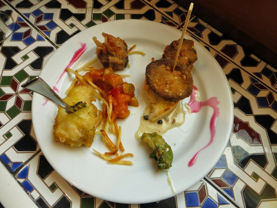 En la Ruta de la Tapa de Brihuega estuvimos en cuatro establecimiento degustando las diferentes tapas que ofrecían, cabe destacar que participaban un total de 18 bares y restaurantes; una cifra bastante significativa si se tiene en cuenta el tamaño del municipio. De todas las tapas que probamos nos quedamos con la del Bar el Tolmo, que se componía de una rica tosta de setas empanada con frutos secos y un trozo de bacalao rebozado, muy típico de este establecimiento.
