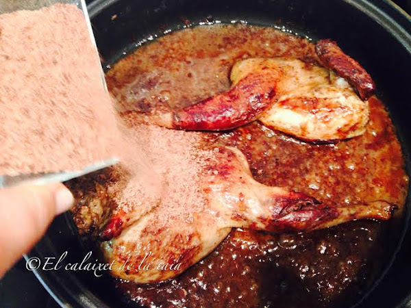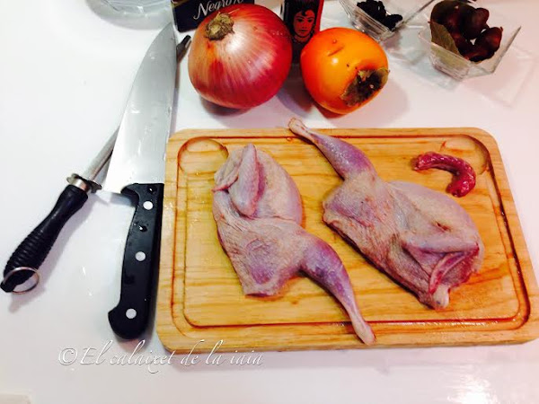 Perdiz al chocolate con salsa de caquis paso a paso.