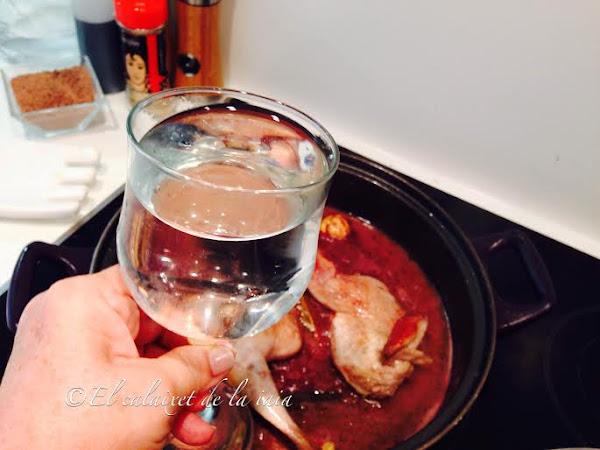 y una copa grande de vino tinto, unos 200 ml, dejamos evaporar el alcohol