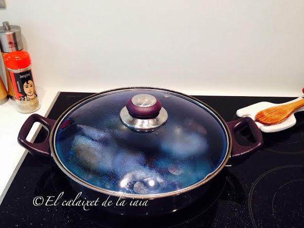 rociamos con la misma medida de agua. tapamos de nuevo y dejamos a fuego lento, volteándolas de vez en cuando durante unos treinta minutos o hasta que estén tiernas. Las iremos pinchando para comprobarlo y si no son muy tiernas, podemos añadir un poco de agua caliente para no quedarnos sin caldo.