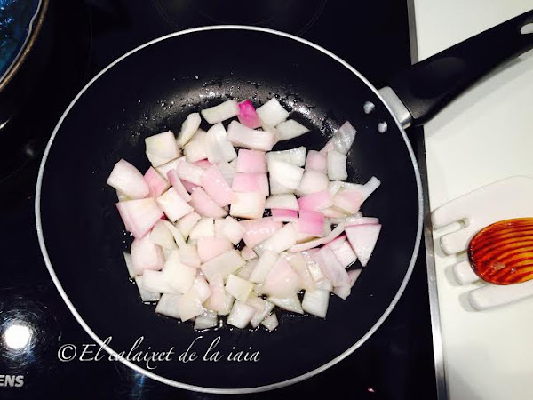 En una sartén con aceite caliente ponemos a pochar la cebolla