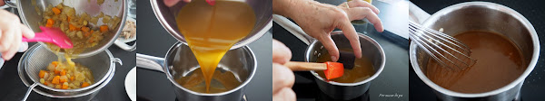Sacar la perdiz y dejar reducir el caldo y las verduras una cuarta parte más o menos.