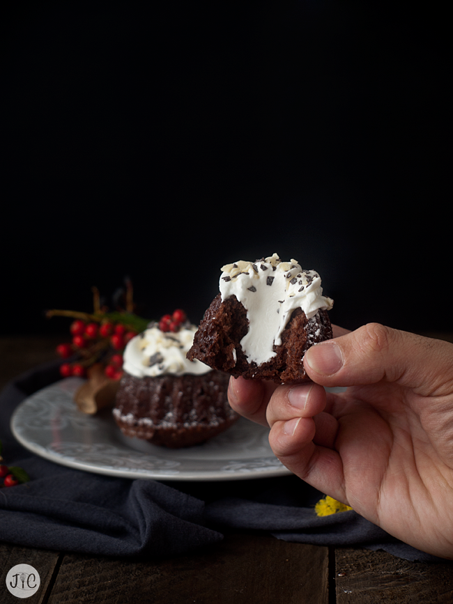 Aunque yo los he coronado con un poco de nata (crema de leche), podéis dejarlos sin nata (crema de leche), aunque el mordisco os aseguro que no causará la misma sensación... Una imagen vale más que mil palabras...