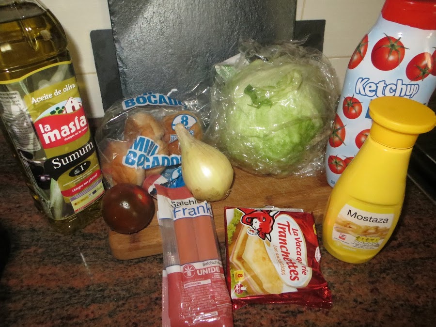 Mientas se están cocinando nuestras salchichas cortamos la lechuga, el tomate, la cebolla y el queso y lo vamos colocando en el pan una vez que se haya tostado. Cuando tengamos cocinada la salchicha se lo añadimos al pan y lo acompañamos con las salsas que más nos gusten.