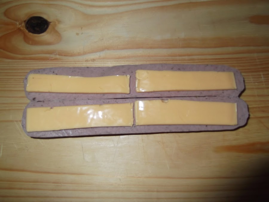 Lo primero que vamos a hacer es preparar las dos salsas, por un lado ponemos a calentar los 100 mililitros de nata (crema de leche) y cuando está caliente le añadimos 4 lonchas de tranchetes de queso cheddar, también podéis utilizar queso cheddar normal. Daros cuenta que el queso va a ser lo que le va a dar espesor a la salsa por lo que echáis más o menos en función de lo que queráis, aunque os recomiendo que os quede un poco espesita para que luego no se os salga del perrito, también está más rica caliente que fría, así que esperaros hasta el último minuto para añadírsela al perrito. Podéis añadirle sal, aunque con la que lleva el queso yo creo que es suficiente.