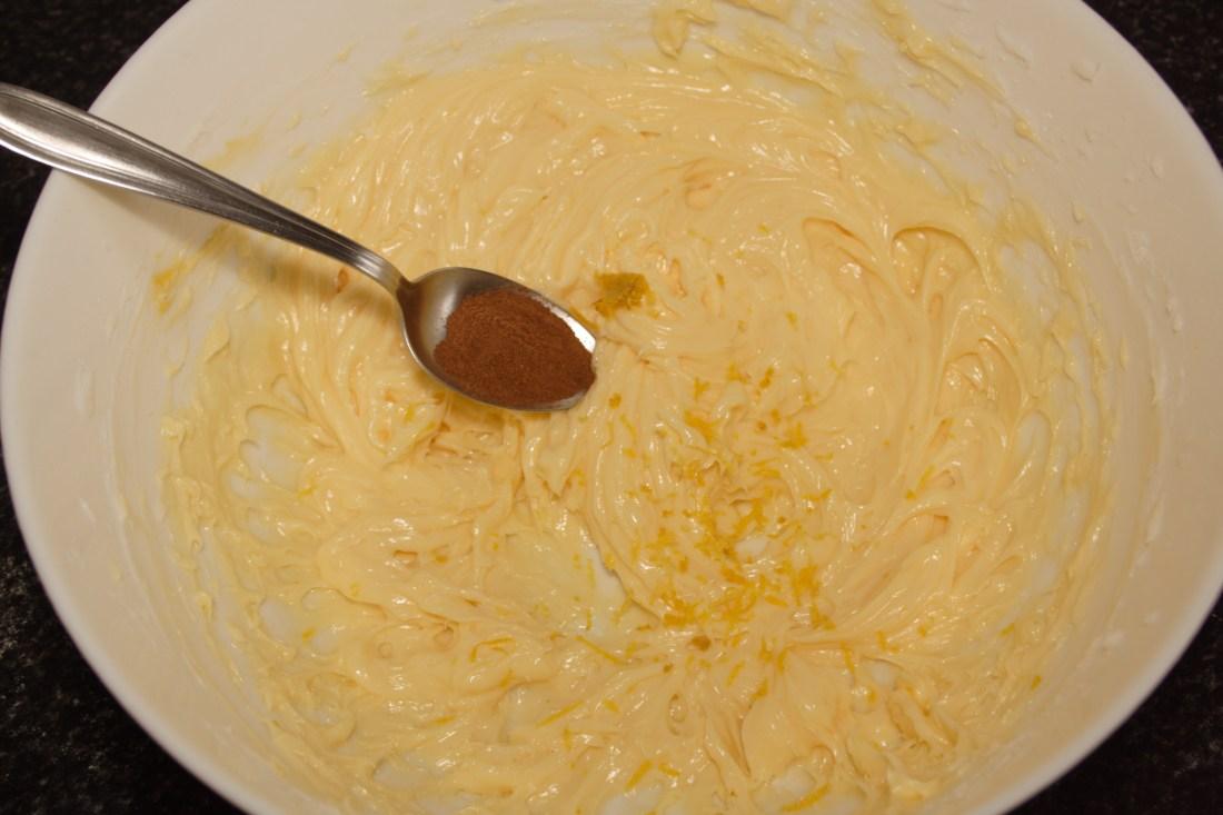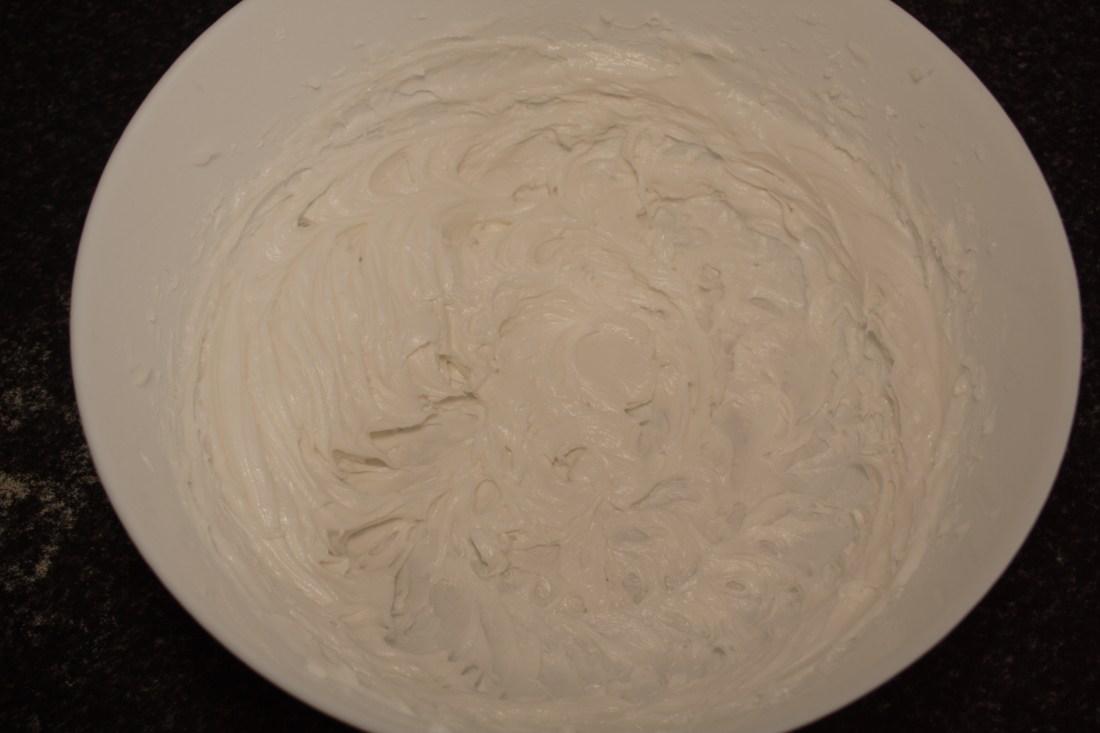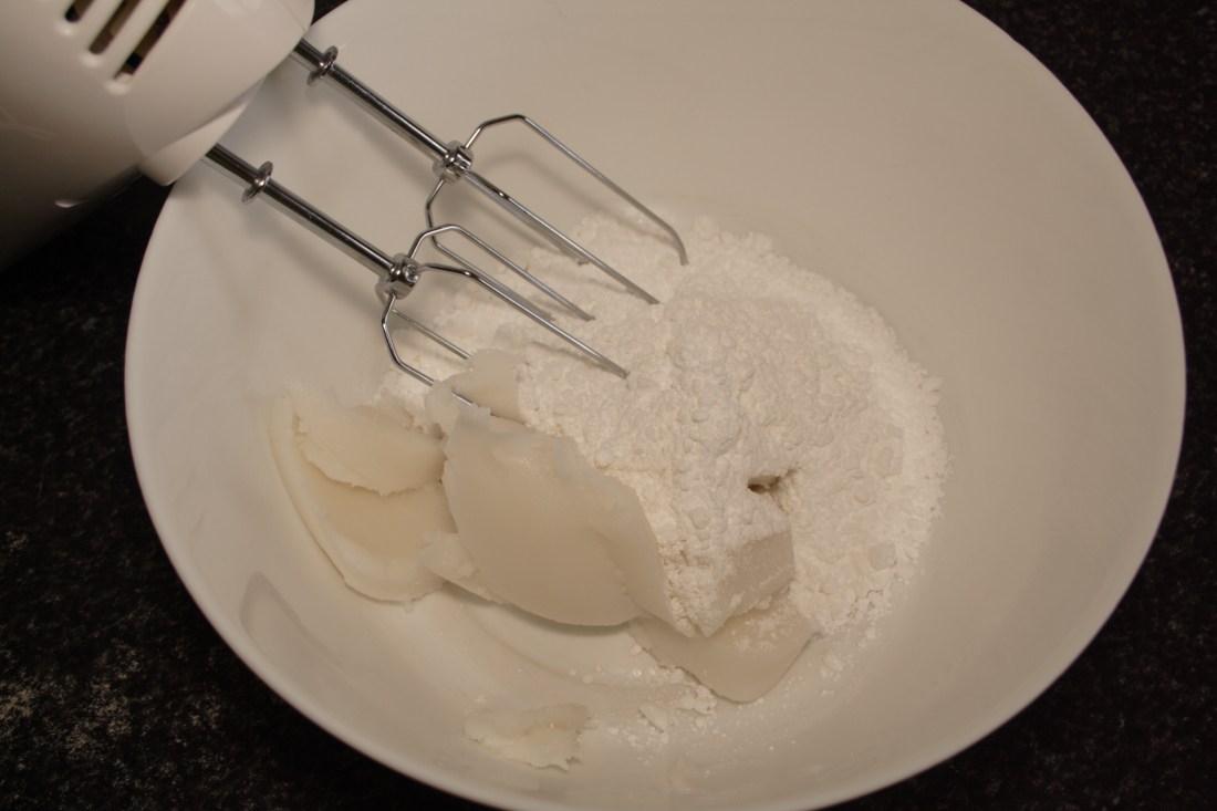 En un bol batimos con las varillas eléctricas la manteca con el azúcar glas hasta que quede con una textura parecida a la nata montada (crema de leche).
