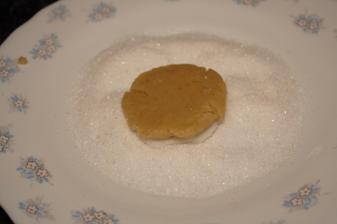 Ponemos azúcar blanquilla en un plato, como si fuéramos a rebozar las perrunillas y reservamos.
