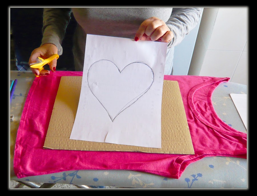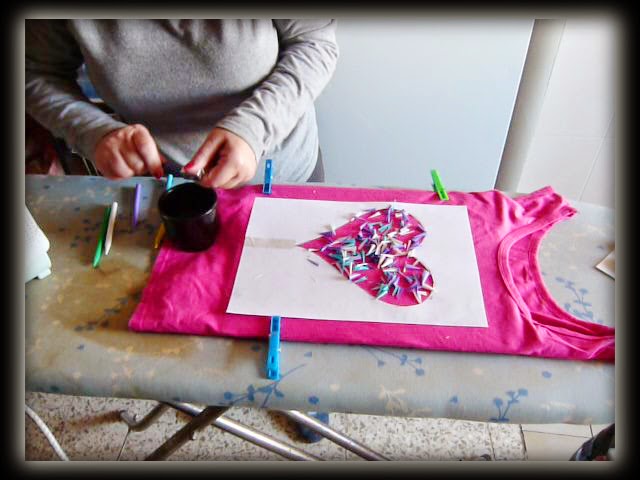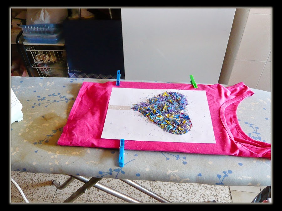 Colocamos el recorte sobre la camiseta en la posición en la que queremos que quede y empezamos a rellenarlo.