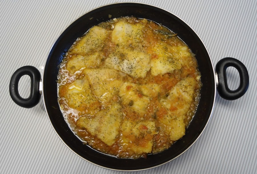 Salpimientar la pescada, se pasa por harina y se frie un poco.