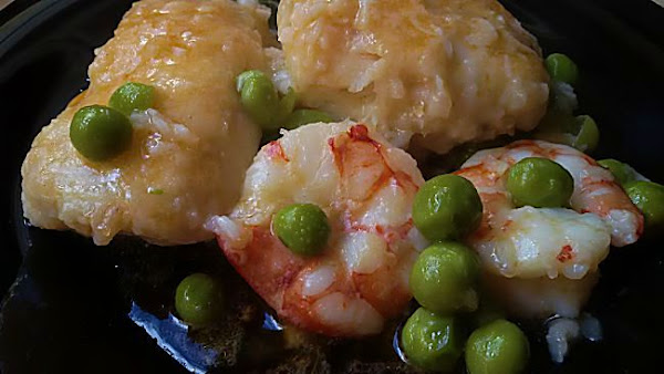 Pescadilla de pincho en salsa con gambones