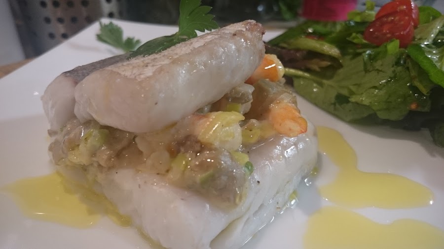Servimos enseguida con un poco más de aceite en crudo y una sencilla ensalada de lechuga y tomatito cherry aderezada con una vinagreta de Aceite, Vinagre de Módena, pimienta blanca y sal. ¡Que aproveche, hitchcookianos!