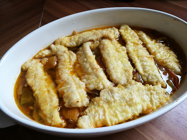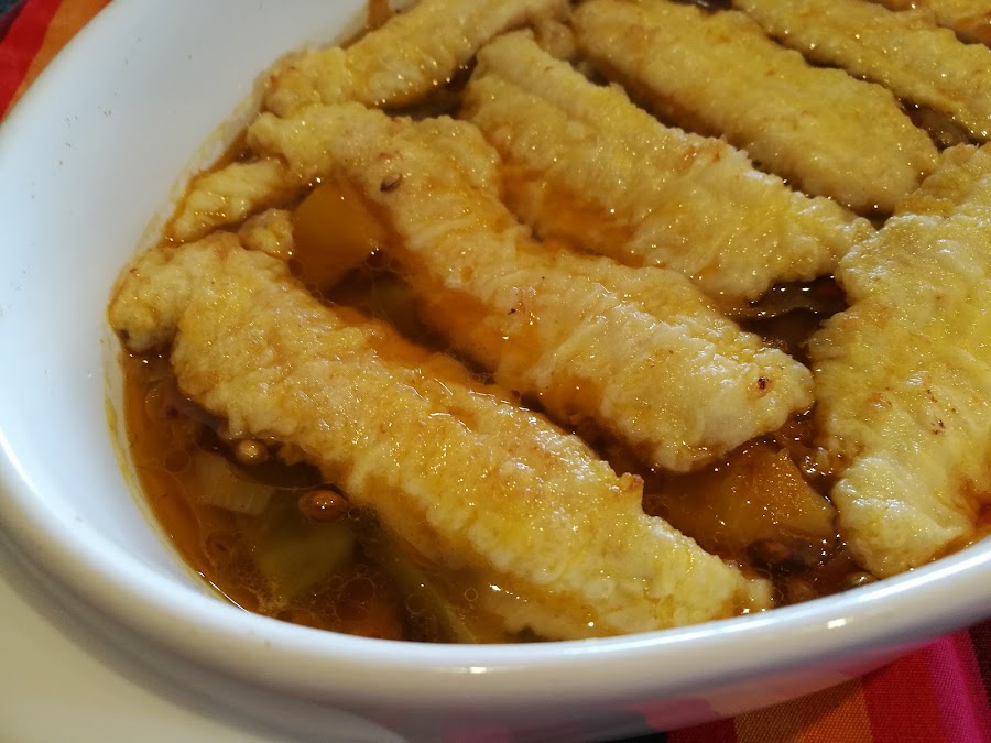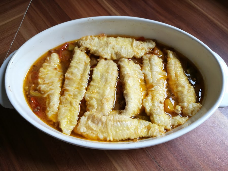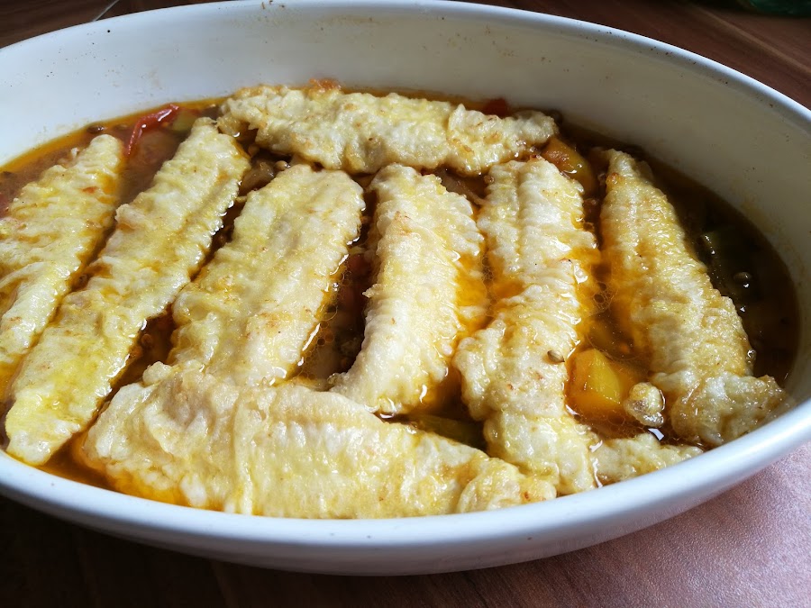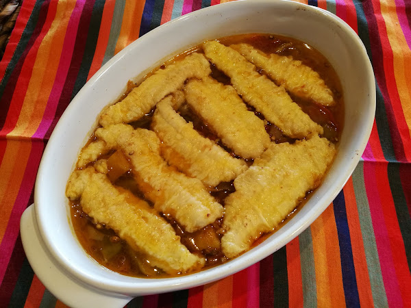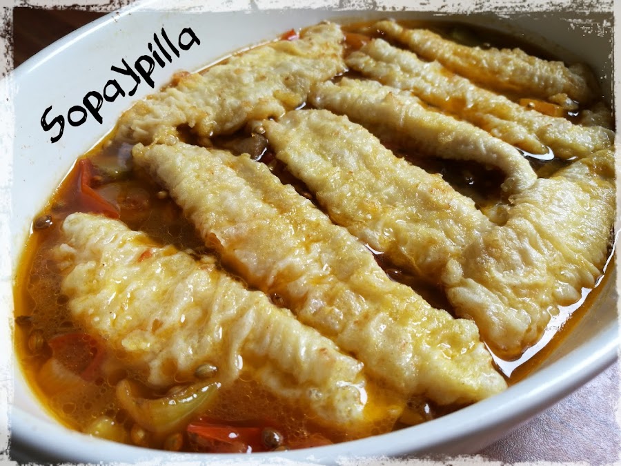 - Enharinar el pescado, pasar por el huevo batido y freír 3 minutos