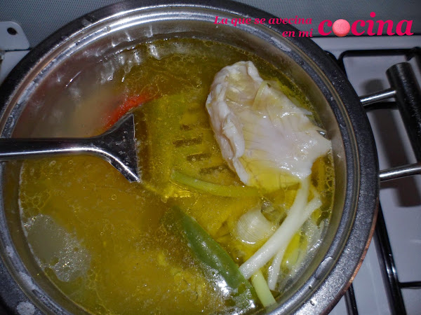 La receta que os traigo hoy es pescado en blanco. En mi casa siempre lo hemos llamado así pero supongo que en otras partes puede llamarse de otra forma. Realmente es una sopita de pescado que aún con lo fácil que es, está buenísima. A mí me encanta comérmela "porque sí" pero también se utiliza mucho cuando tenemos problemas digestivos. Por eso, para depurarme un poco después de tanta comida en la feria es en el primer plato que pensé que tomaríamos ya en casa.