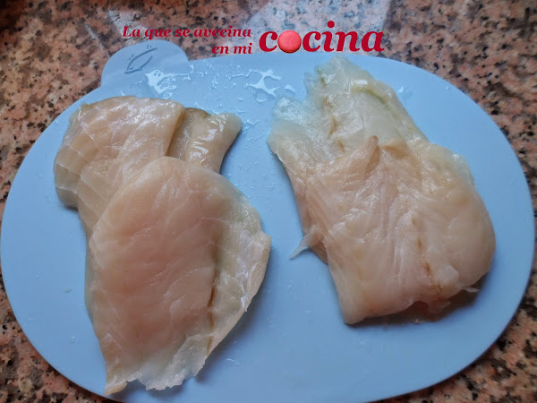 A mí me gusta hacerlo con rosada porque es un pescado que está buenísimo y además sin espinas (si te lo preparan bien en la pescadería, claro está). Por lo que es muy cómodo a la hora de comerlo porque no tienes ese "miedo" a encontrarte una espina. Pero ni que decir tiene que podéis hacerlo con otros pescados como por ejemplo merluza.